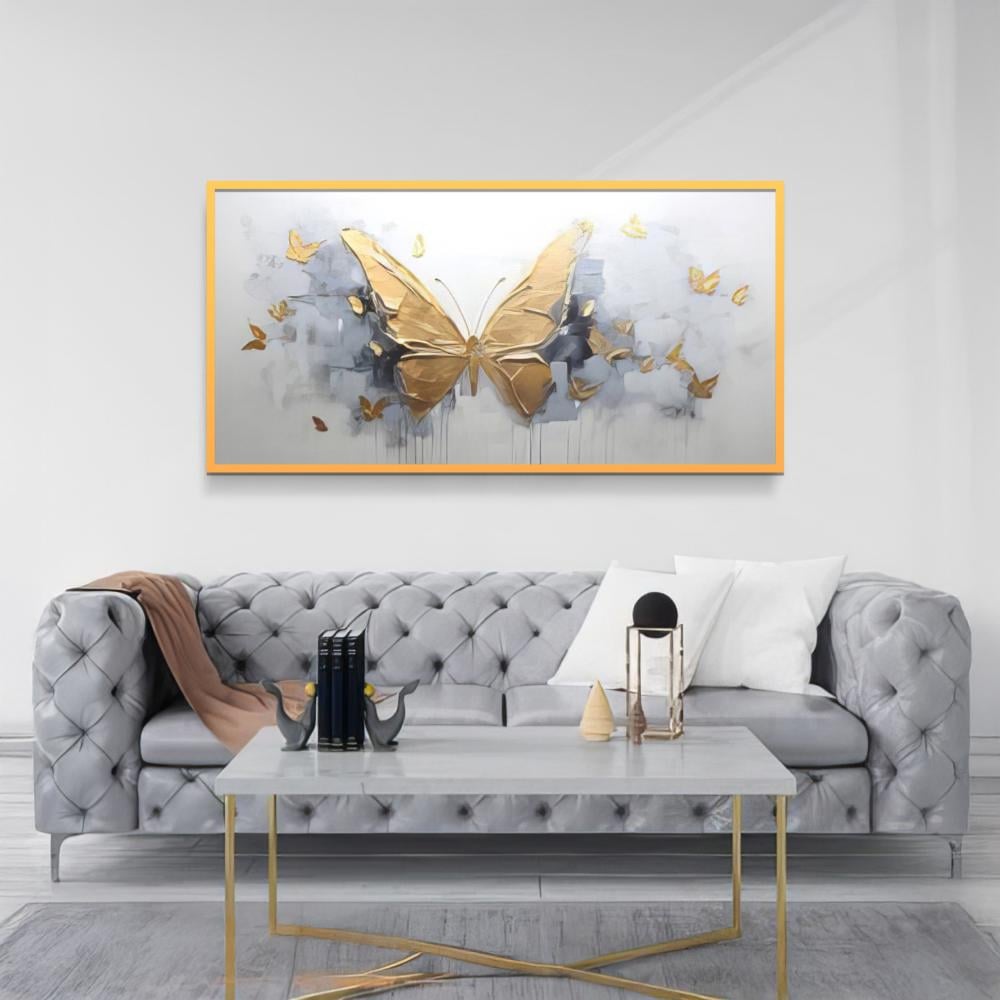 اقتني الآن لوحة الفراشة الذهبية وأضف لبيتك لمسة فنية تجمع بين الجمال والذوق الرفيع! الكمية محدودة – سارع بالطلب.