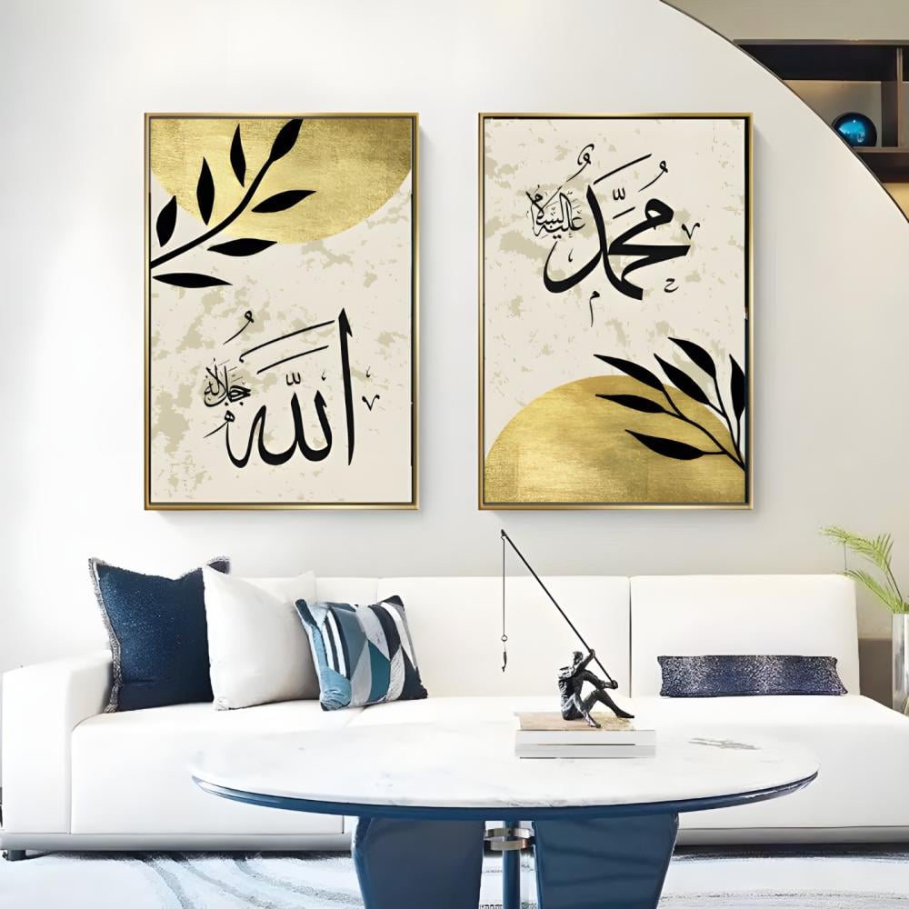 أضف لمسة من الفخامة والجمال الفني الإسلامي إلى مساحتك مع هذه اللوحة المميزة التي تجمع بين الروحانية والإبداع. تم تصميم هذه اللوحة بدقة لتحتفي بجمال الخط العربي، وهي مطبوعة على قماش كأنفس عالي الجودة لضمان متانة الألوان والتفاصيل. تعتبر هذه اللوحة الخيار المثالي لديكور المنازل أو المكاتب، حيث تضيف لمسة من الأصالة والدفء.