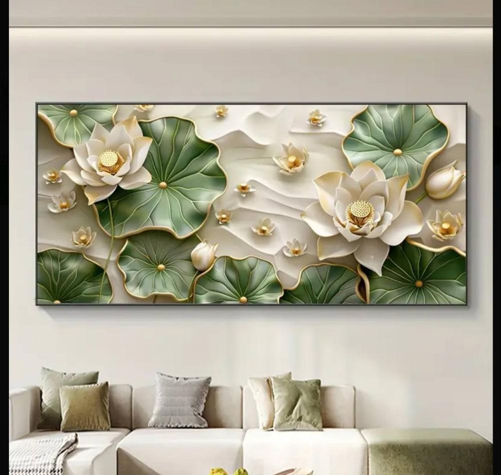 لوحة جدارية ثلاثية الأبعاد (3D) من الكانفس بتصميم زهور بيضاء ذات ملمس ناعم