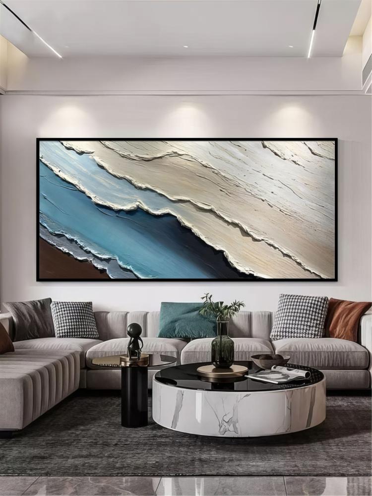 - تُعد لوحة ديكور موج ثلاثية ابعاد خيارًا رائعًا لهواة الفن الحديث والديكورات الهادئة